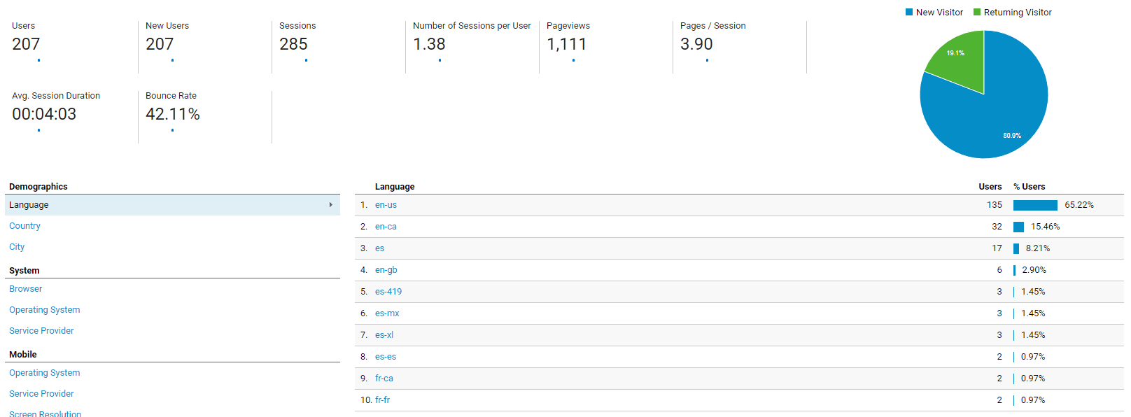 After only 4 months of launching the website and marketing efforts, the following metrics increased: monthly sessions (223%), monthly users (85%), pages per session (4.6%), conversion rate (12.7%), and average duration (6 seconds). It also sold $8,000 USD from leads  through the website.