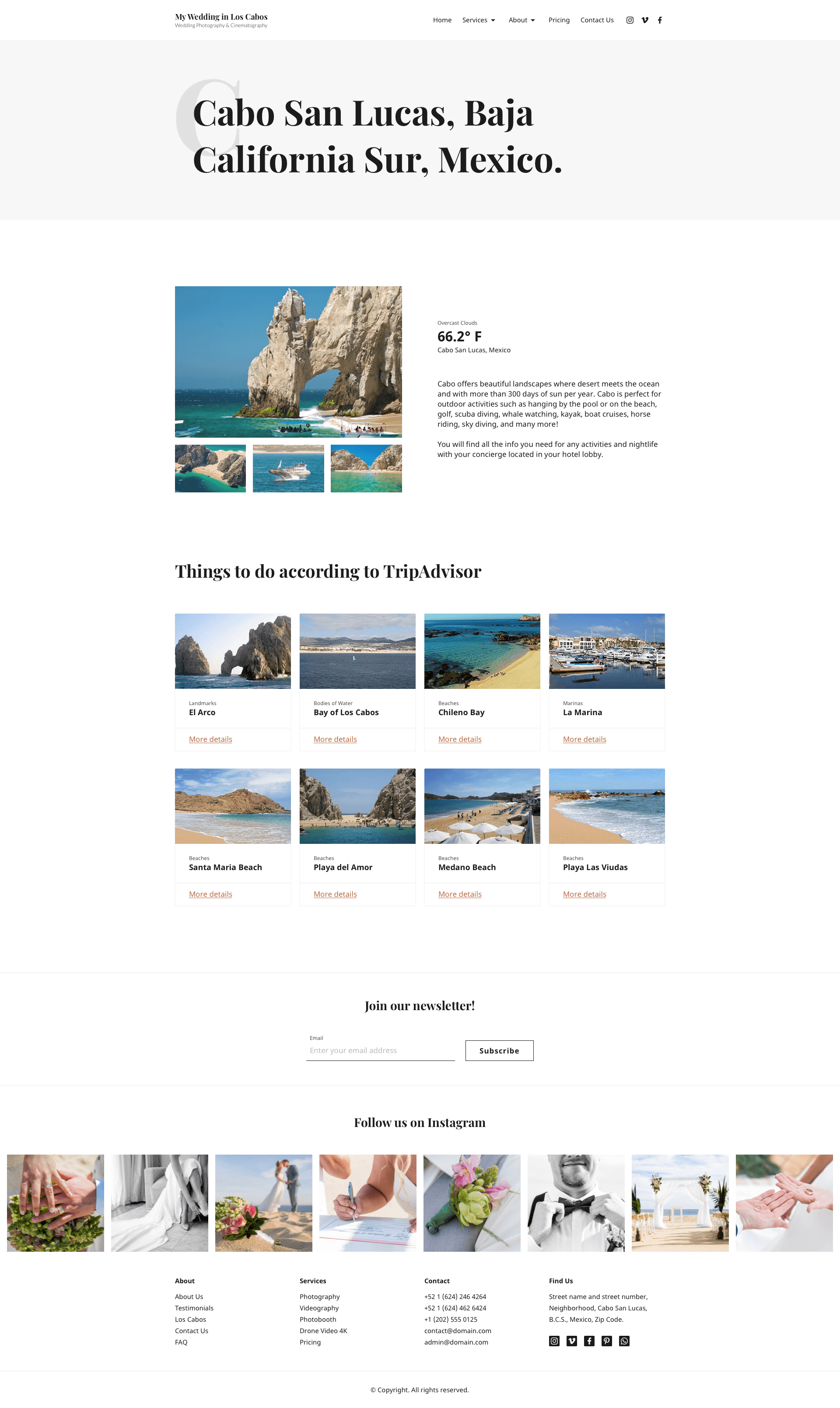 My Wedding in Los Cabos is a photography and videography company in Los Cabos, Mexico. They needed to expand their offerings outside the only hotel they work at. Most of their customers lived in the United States and Canada, so their website was the most important channel to showcase their work and get new clients. They were not getting any leads online.